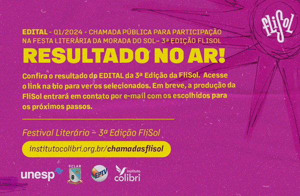 Festa Literária da Morada do Sol será realizada de 06 a 10 de novembro; selecionados participarão de mesas no dia 08