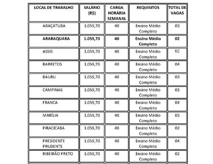 São 55 vagas para o cargo de oficial administrativo em 17 cidades do Interior
