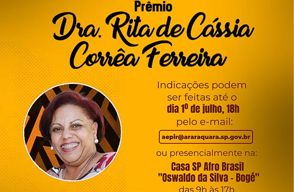 Prêmio "Dra. Rita de Cássia": inscrições seguem abertas até o dia 1º de julho