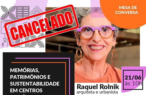 Atividade com Raquel Rolnik é adiada