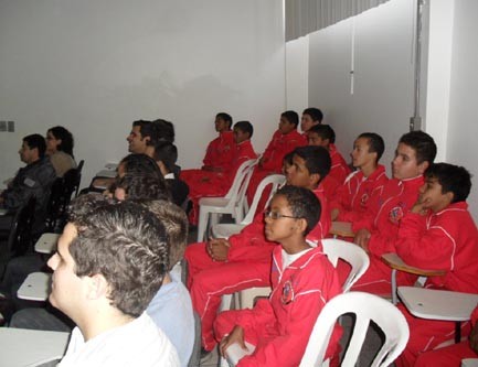 Estagiários da empresa ZF Sachs fizeram a entrega do material e foram homenageados pelos garotos