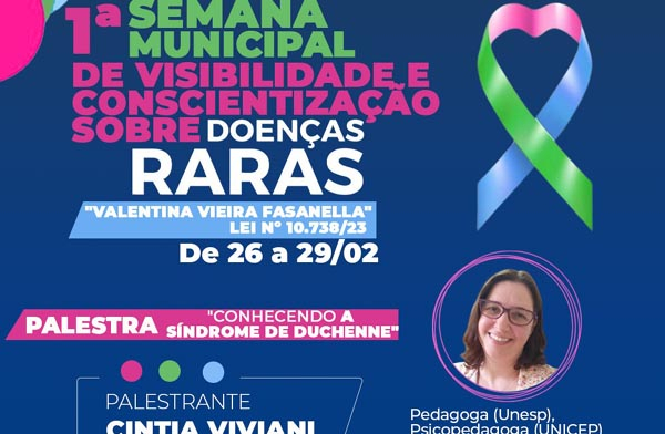 Com entrada gratuita, atividade compõe a 1ª Semana Municipal de Visibilidade e Conscientização sobre Doenças Raras