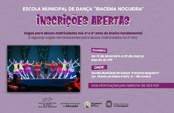 Última semana para as inscrições da Escola Municipal de Dança Iracema Nogueira