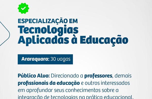São 30 vagas para o curso de especialização gratuito em Tecnologias Aplicadas à Educação