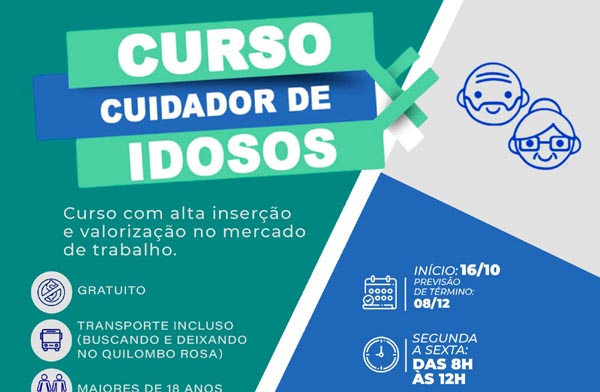 Curso de cuidador de idosos no Quilombo Rosa tem inscrições abertas