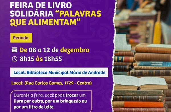 De 8 a 12 de dezembro, Biblioteca Municipal, feira irá incentivar a leitura, promover a troca de livros e fortalecer a solidariedade comunitária