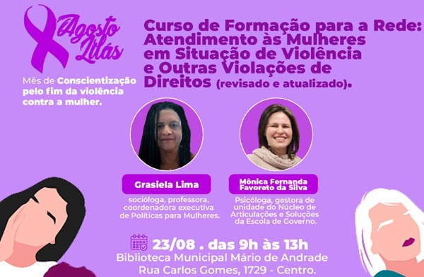 "Agosto Lilás" terá curso sobre protocolo de atendimento às mulheres em situação de violência
