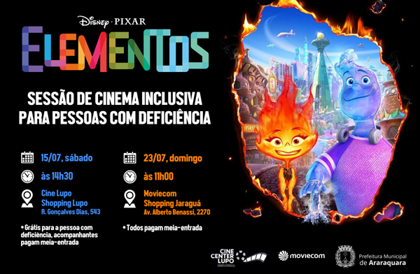 Cine Lupo e Moviecom passam a oferecer uma sessão adaptada mensal para pessoas com deficiência (física, intelectual, autismo – entre outras); sessões deste mês apresentam “Elementos” nos dias 15 e 23