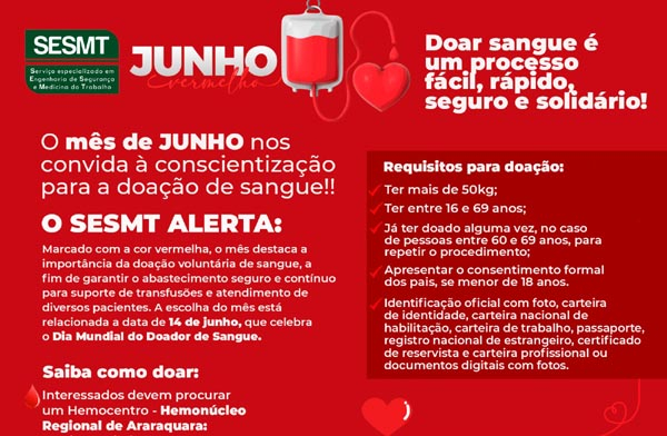 Sesmt adere à campanha Junho Vermelho para incentivar a doação de sangue