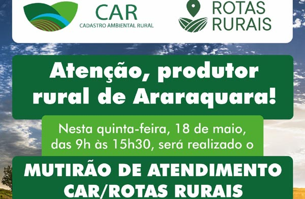 Mutirão de Atendimento do Cadastro Ambiental Rural e Rotas Rurais acontece nesta quinta (18)