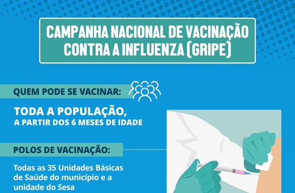 A vacina contra a Influenza (gripe) está liberada para toda a população, a partir de 6 meses de idade, em todas as unidades de saúde