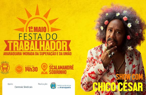 Araraquara terá Chico César em homenagem ao Dia do Trabalhador