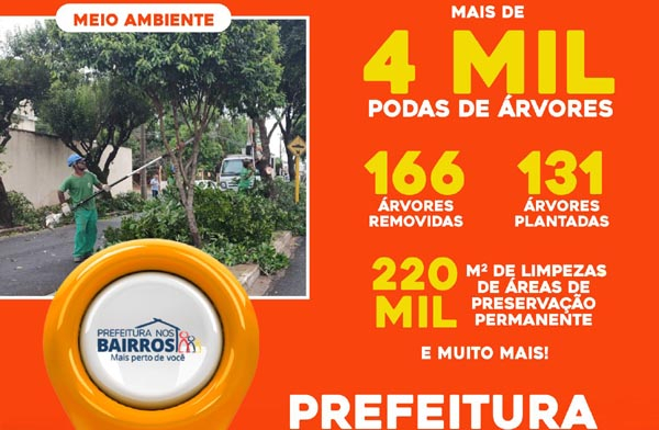 Manutenção de áreas verdes, podas e plantios de árvores e atendimento social estão entre os serviços realizados no programa