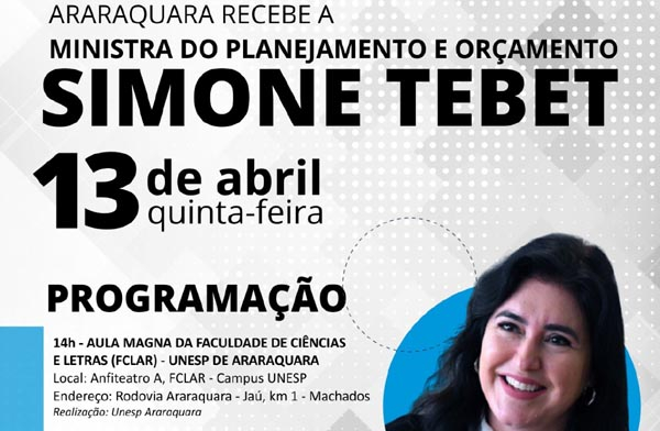 Ministra Simone Tebet vem a Araraquara no dia 13 de abril