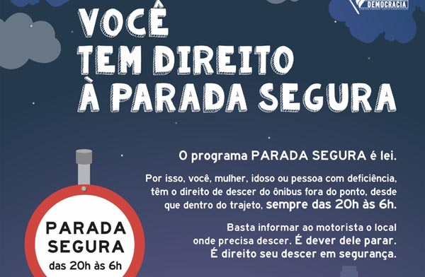 Mulheres, idosos ou pessoas com deficiência podem pedir ao motorista do transporte coletivo para descer fora do ponto entre as 20h e às 6h