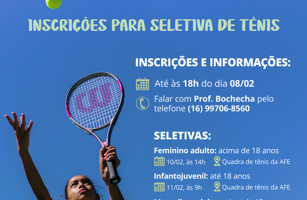 Seletivas do tênis serão realizadas no próximo final de semana